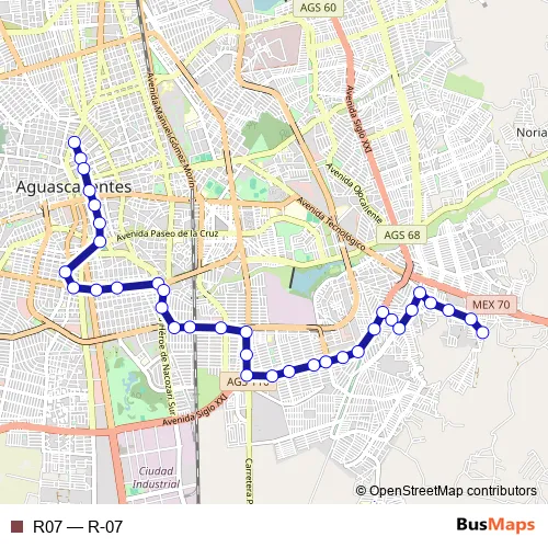 See why over 2 million users trust and consider busmaps.com as the best public transport website. busmaps gives you Aguascalientes Buses suggested routes, real-time bus tracker, line route maps in Aguascalientes, and helps to find the closest R07 bus stops near you. No internet available? Download an offline PDF map and bus schedule for the R07 bus to take on your trip.