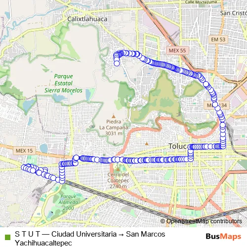 See why over 2 million users trust and consider busmaps.com as the best public transport website. busmaps gives you Toluca Buses suggested routes, real-time bus tracker, line route maps in Toluca, and helps to find the closest S T U T bus stops near you. No internet available? Download an offline PDF map and bus schedule for the S T U T bus to take on your trip.