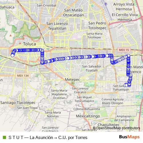 Bus S T U T - La Asunción → C.U. por Torres: Full Schedule in Toluca
