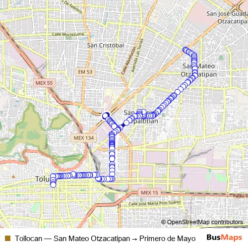 Click here to view the nearest Tollocan - San Mateo Otzacatipan → Primero de Mayo bus stop.