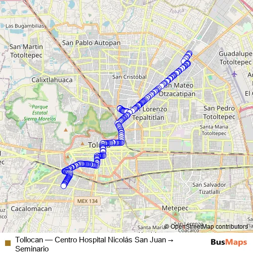 Tollocan (Centro Hospital Nicolás San Juan → Seminario) Bus in Toluca