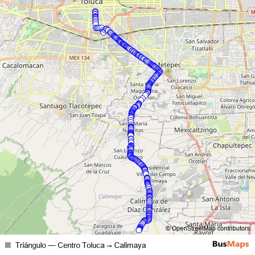 Bus Triángulo - Centro Toluca → Calimaya in Calimaya: Stops & Timetable