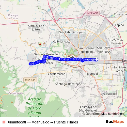 Bus Xinantécatl - Acahualco → Puente Pilares in Toluca: Stops & Timetable