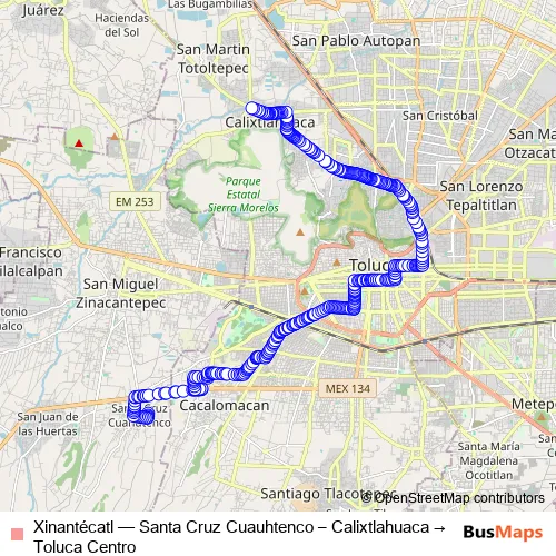 Bus Xinantécatl - Santa Cruz Cuauhtenco – Calixtlahuaca → Toluca Centro Schedule in Toluca