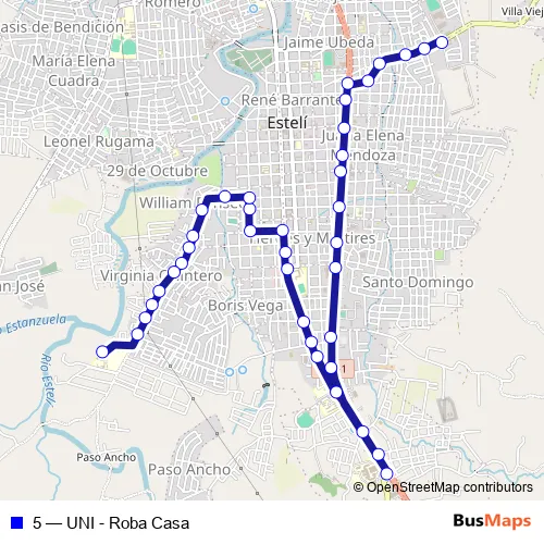 Bus 5 - UNI - Roba Casa: Full Schedule in Esteli
