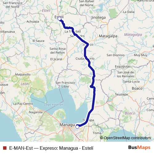 See why over 2 million users trust and consider busmaps.com as the best public transport website. busmaps gives you Esteli Buses suggested routes, real-time bus tracker, line route maps in Esteli, and helps to find the closest E-MAN-Est bus stops near you. No internet available? Download an offline PDF map and bus schedule for the E-MAN-Est bus to take on your trip.