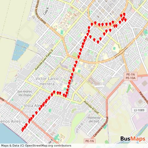 Covisa S.A.C., based in Trujillo, La Libertad, Peru, offers a reliable and comprehensive network of public transport services, including Bus. Our platform provides detailed and up-to-date information on routes, schedules, stops, and arrivals for all services operated by Covisa S.A.C.. Whether you're planning your daily commute or exploring the city, our tools help you find the nearest stop and the best route to your destination.
