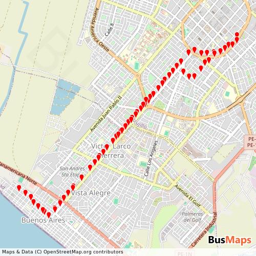 Expreso Buenos Aires S.A.C., based in Trujillo, La Libertad, Peru, offers a reliable and comprehensive network of public transport services, including Bus. Our platform provides detailed and up-to-date information on routes, schedules, stops, and arrivals for all services operated by Expreso Buenos Aires S.A.C.. Whether you're planning your daily commute or exploring the city, our tools help you find the nearest stop and the best route to your destination.