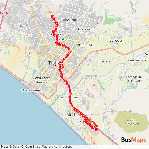 Miramar, based in Trujillo, La Libertad, Peru, offers a reliable and comprehensive network of public transport services, including Bus. Our platform provides detailed and up-to-date information on routes, schedules, stops, and arrivals for all services operated by Miramar. Whether you're planning your daily commute or exploring the city, our tools help you find the nearest stop and the best route to your destination.