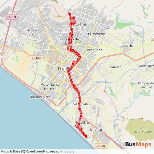 Santa Lucia de Moche, based in Trujillo, La Libertad, Peru, offers a reliable and comprehensive network of public transport services, including Bus. Our platform provides detailed and up-to-date information on routes, schedules, stops, and arrivals for all services operated by Santa Lucia de Moche. Whether you're planning your daily commute or exploring the city, our tools help you find the nearest stop and the best route to your destination.