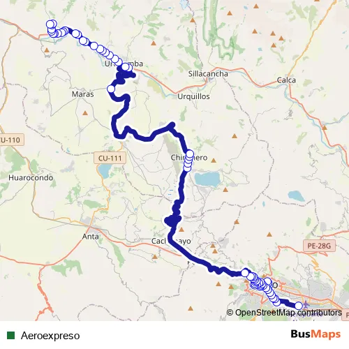 See why over 2 million users trust and consider busmaps.com as the best public transport website. busmaps gives you Cusco Buses suggested routes, real-time bus tracker, line route maps in Cusco, and helps to find the closest Aeroexpreso bus stops near you. No internet available? Download an offline PDF map and bus schedule for the Aeroexpreso bus to take on your trip.
