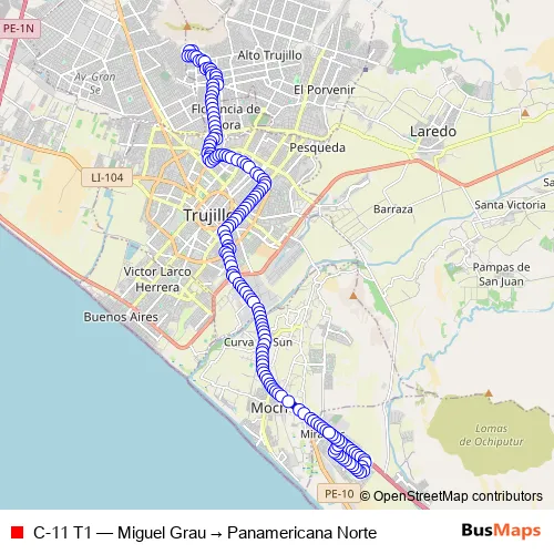 Bus C-11 T1 - Miguel Grau → Panamericana Norte in Trujillo: Stops & Timetable