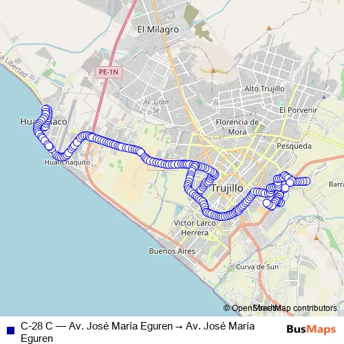See why over 2 million users trust and consider busmaps.com as the best public transport website. busmaps gives you Trujillo Buses suggested routes, real-time bus tracker, line route maps in Trujillo, and helps to find the closest C-28 C bus stops near you. No internet available? Download an offline PDF map and bus schedule for the C-28 C bus to take on your trip.