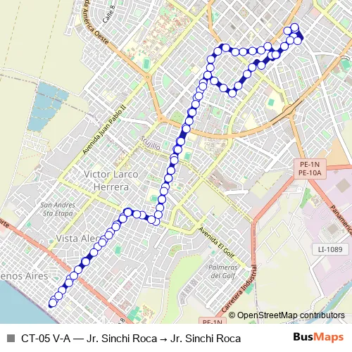 Bus CT-05 V-A - Jr. Sinchi Roca → Jr. Sinchi Roca in Trujillo: Stops & Timetable