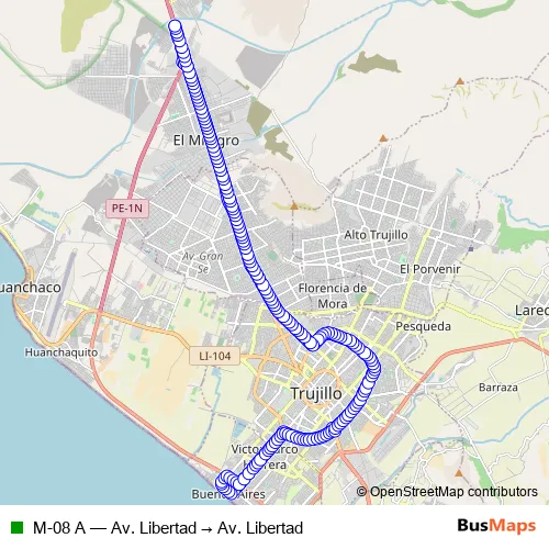 M-08 A (Av. Libertad → Av. Libertad) Bus in Trujillo