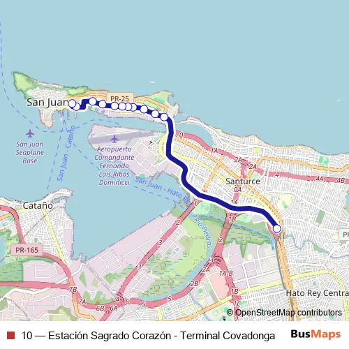 Bus 10 - Estación Sagrado Corazón - Terminal Covadonga: Full Schedule in San Juan