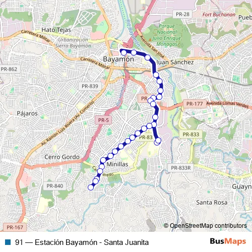 Click here to view the nearest 91 - Estación Bayamón - Santa Juanita bus stop.