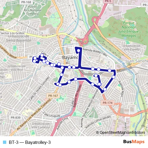 See why over 2 million users trust and consider busmaps.com as the best public transport website. busmaps gives you Bayamon Buses suggested routes, real-time bus tracker, line route maps in Bayamon, and helps to find the closest BT-3 bus stops near you. No internet available? Download an offline PDF map and bus schedule for the BT-3 bus to take on your trip.