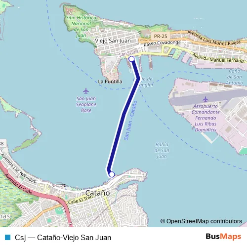 The first stop of the Csj ferry route is Terminal de Lancha Cataño and the last stop is Terminal de Lancha San Juan. Csj (Cataño-Viejo San Juan) is operational during todos los días.