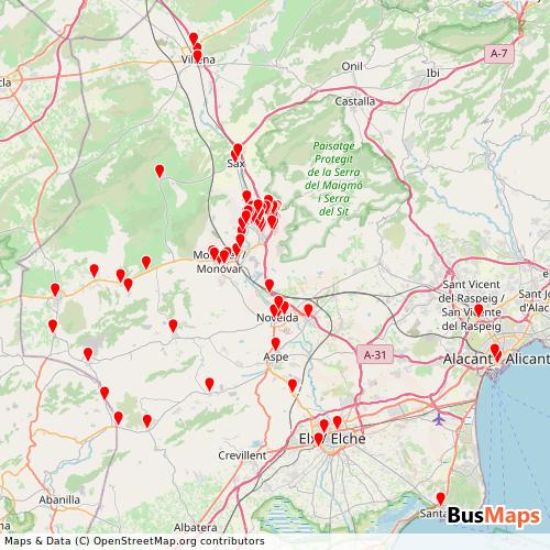 Alacant – Villena e hijuelas [2021], based in Novelda, Valencia, Spain, offers a reliable and comprehensive network of public transport services, including Bus. Our platform provides detailed and up-to-date information on routes, schedules, stops, and arrivals for all services operated by Alacant – Villena e hijuelas [2021]. Whether you're planning your daily commute or exploring the city, our tools help you find the nearest stop and the best route to your destination.