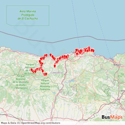 Autobuses Palomera,S.A. operates in the following cities: Santander, Cabezon de Liebana, Camaleno, Polanco, Reocin, Ruente.