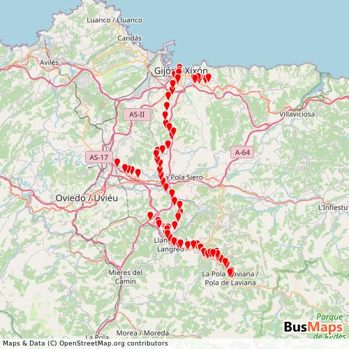 Consorcio Autos Sama - Autocares Mariano operates in the following cities: Gijon, Oviedo, Blimea, Norena.