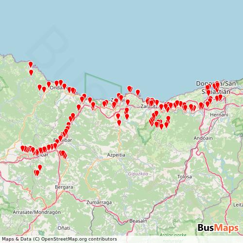 Lurraldebus Euskotren operates in the following cities: San Sebastian, Ermua, Aizarnazabal, Aya, Deba, Elgeta, Elgoibar, Mutriku.