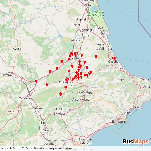 Ontinyent - Xàtiva operates in the following cities: Ontinyent, Xativa, Gandia, Mogente.