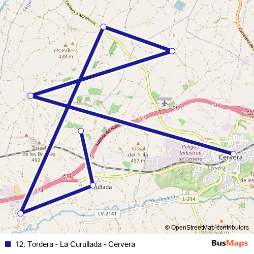 12. Tordera - La Curullada - Cervera bus Route Map