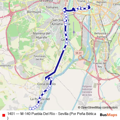 Click here to view the nearest 1401 - M-140 Puebla Del Río - Sevilla (Por Peña Bética) bus stop.