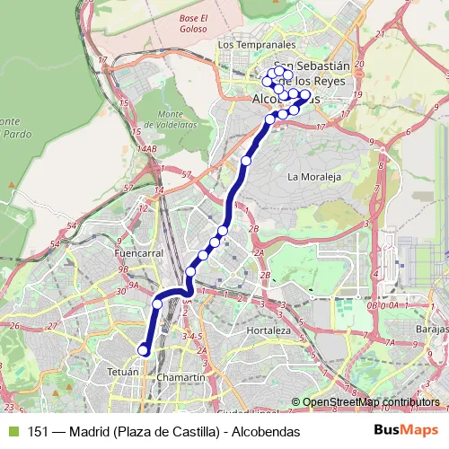 See why over 2 million users trust and consider busmaps.com as the best public transport website. busmaps gives you Alcobendas Buses suggested routes, real-time bus tracker, line route maps in Alcobendas, and helps to find the closest 151 bus stops near you. No internet available? Download an offline PDF map and bus schedule for the 151 bus to take on your trip.