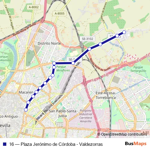 See why over 2 million users trust and consider busmaps.com as the best public transport website. busmaps gives you Sevilla Buses suggested routes, real-time bus tracker, line route maps in Sevilla, and helps to find the closest 16 bus stops near you. No internet available? Download an offline PDF map and bus schedule for the 16 bus to take on your trip.