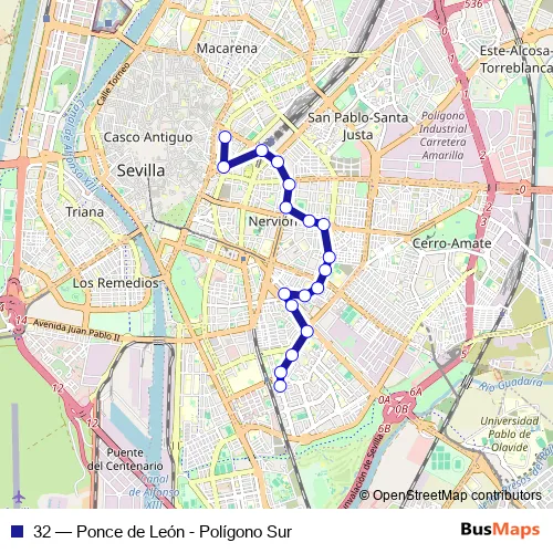 Amador de Los Rios (Gonzalo Bilbao). 32 (Ponce de León - Polígono Sur) is operational during todos los días.