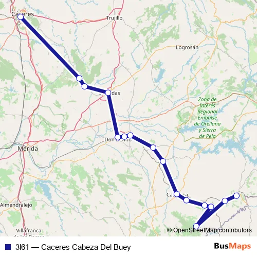 The first stop of the 3l61 bus route is Caceres and the last stop is Cabeza Del Buey. 3l61 (Caceres Cabeza Del Buey) is operational during todos los días.