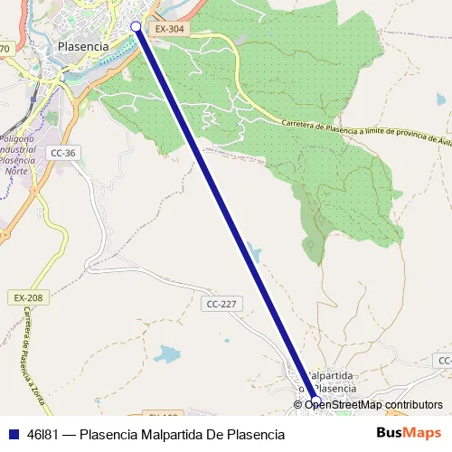Click here to view the nearest 46l81 - Plasencia Malpartida De Plasencia bus stop.