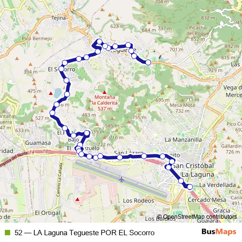 Intercambiador Laguna. 52 (LA Laguna Tegueste POR EL Socorro) is operational during todos los días.