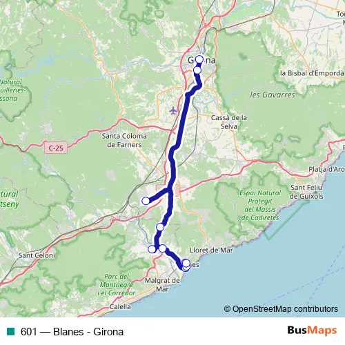 Bus 601 - Blanes - Girona in Blanes: Stops & Timetable