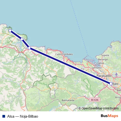 Noja. Alsa (Noja-Bilbao) is operational during los fines de semana.