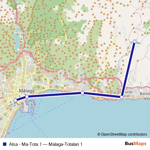 See why over 2 million users trust and consider busmaps.com as the best public transport website. busmaps gives you Malaga Buses suggested routes, real-time bus tracker, line route maps in Malaga, and helps to find the closest Alsa - Ma-Tota 1 bus stops near you. No internet available? Download an offline PDF map and bus schedule for the Alsa - Ma-Tota 1 bus to take on your trip.