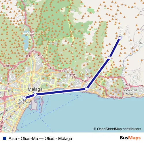See why over 2 million users trust and consider busmaps.com as the best public transport website. busmaps gives you Malaga Buses suggested routes, real-time bus tracker, line route maps in Malaga, and helps to find the closest Alsa - Olias-Ma bus stops near you. No internet available? Download an offline PDF map and bus schedule for the Alsa - Olias-Ma bus to take on your trip.