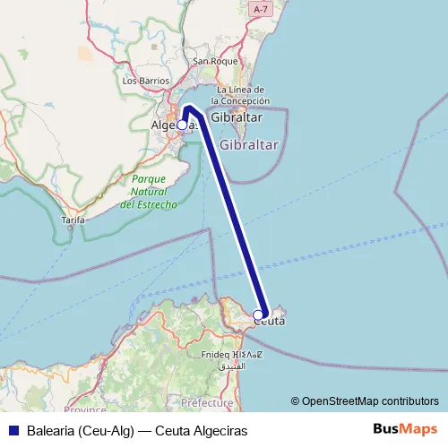 See why over 2 million users trust and consider busmaps.com as the best public transport website. busmaps gives you Ceuta Ferries suggested routes, real-time bus tracker, line route maps in Ceuta, and helps to find the closest Balearia (Ceu-Alg) ferry stops near you. No internet available? Download an offline PDF map and bus schedule for the Balearia (Ceu-Alg) ferry to take on your trip.
