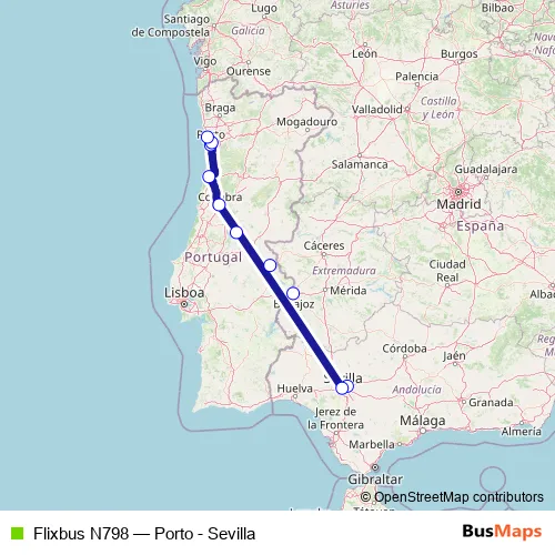 Click here to view the nearest Flixbus N798 - Porto - Sevilla bus stop.