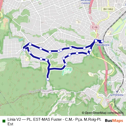 See why over 2 million users trust and consider busmaps.com as the best public transport website. busmaps gives you Sant Cugat del Valles Buses suggested routes, real-time bus tracker, line route maps in Sant Cugat del Valles, and helps to find the closest Línia V2 bus stops near you. No internet available? Download an offline PDF map and bus schedule for the Línia V2 bus to take on your trip.