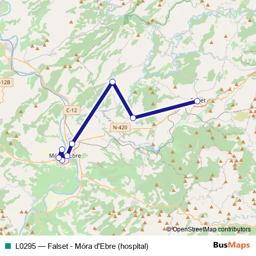 Click here to view the nearest L0295 - Falset - Móra d'Ebre (hospital) bus stop.