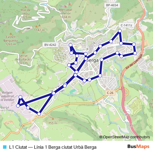 Bus L1 Ciutat - Línia 1 Berga ciutat Urbà Berga in Avia: Stops & Timetable