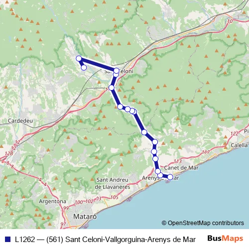 Click here to view the nearest L1262 - (561) Sant Celoni-Vallgorguina-Arenys de Mar bus stop.
