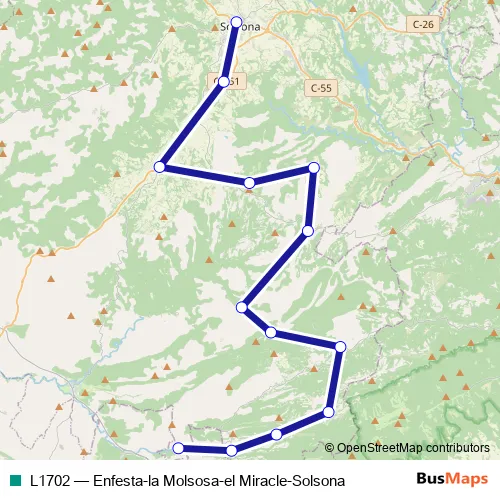 Click here to view the nearest L1702 - Enfesta-la Molsosa-el Miracle-Solsona bus stop.
