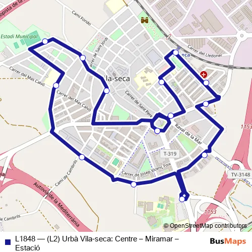 Click here to view the nearest L1848 - (L2) Urbà Vila-seca: Centre – Miramar – Estació bus stop.