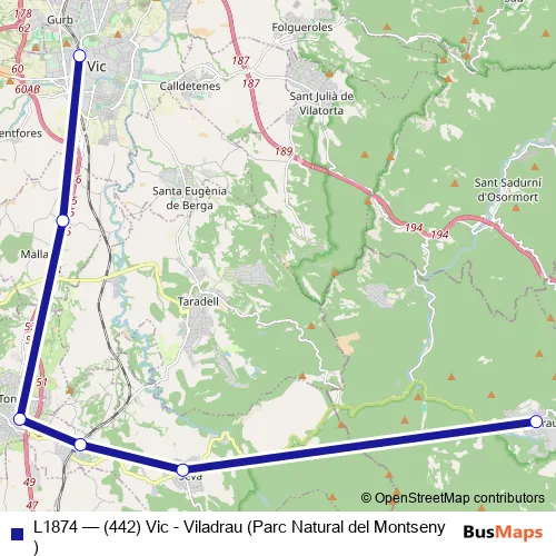 Click here to view the nearest L1874 - (442) Vic - Viladrau (Parc Natural del Montseny) bus stop.