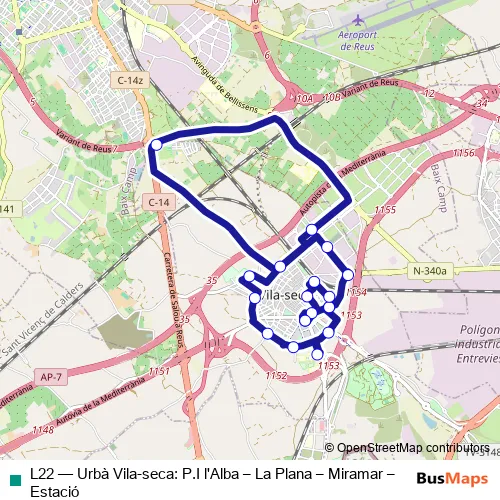 Click here to view the nearest L22 - Urbà Vila-seca: P.I l'Alba – La Plana – Miramar – Estació bus stop.